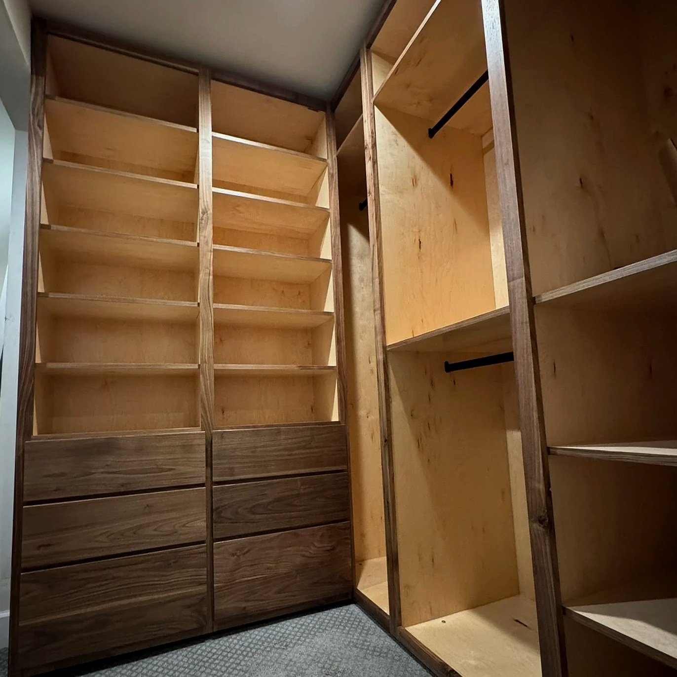 A well-designed closet isn’t just about storage—it’s about making your daily routine easier and more efficient. Thoughtful layouts, smart shelving, and quality materials can transform cluttered spaces into organized, functional areas tailored to your needs. Whether you’re looking for a simple upgrade or a fully custom solution, we work closely with you to design and build a closet that maximizes space and fits your lifestyle perfectly.